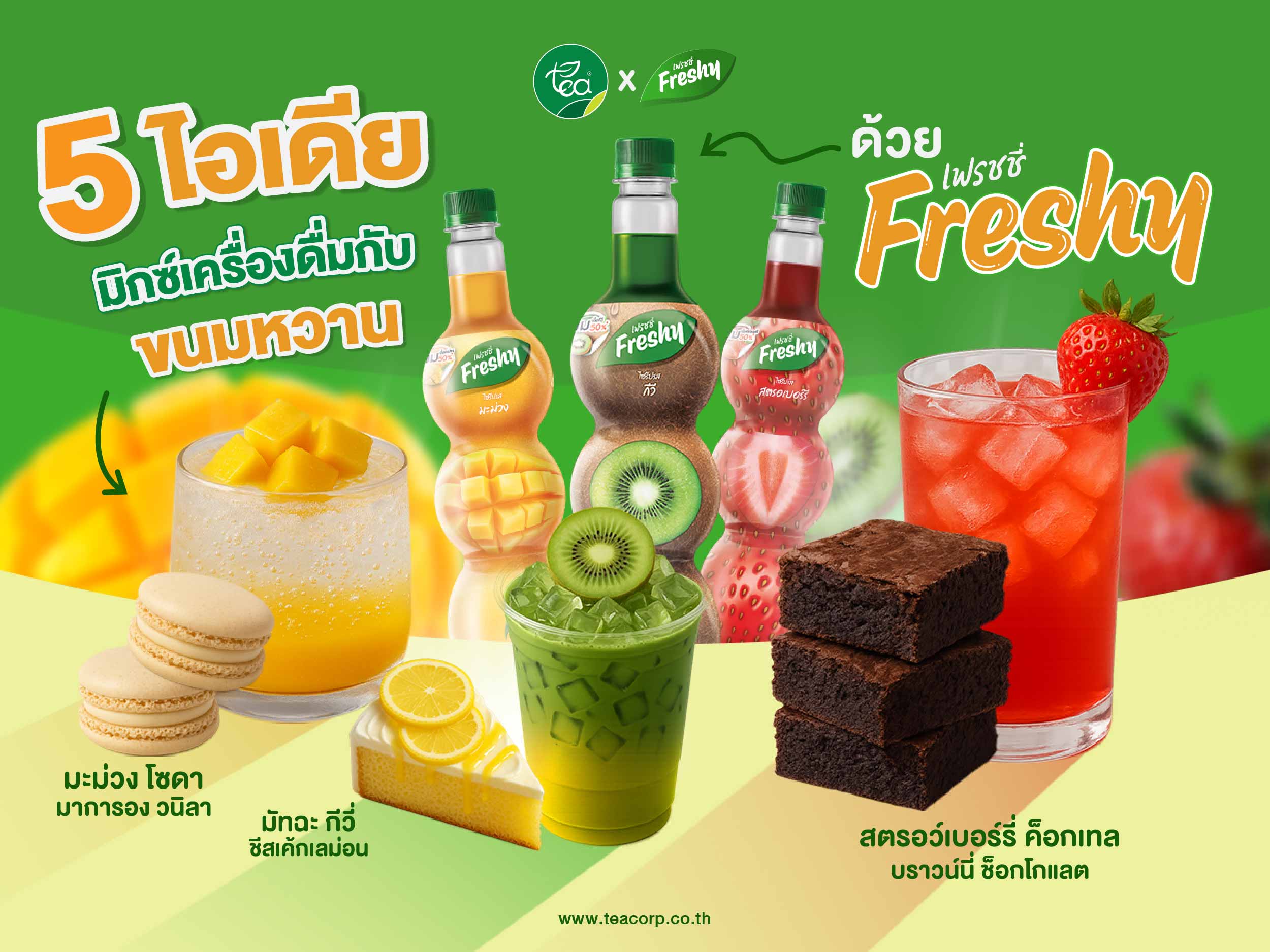 ไซรัป เฟรชชี่ (Freshy Syrup) เป็นวัตถุดิบที่ช่วยให้การจับคู่ รสชาติ ระหว่าง เครื่องดื่ม และ ขนมหวาน ง่ายขึ้น ด้วยความเข้มข้นของ รสชาติ และ สีสัน จากผลไม้แท้ ทำให้สามารถออกแบบ เมนู ให้ “ตัดกัน” หรือ “เสริมกัน” ได้อย่างแม่นยำ