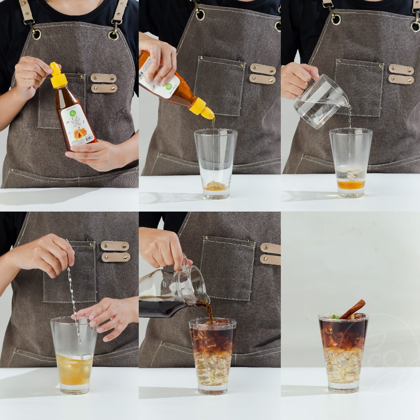 - Fill with water until reaching 250 ml, stir until well blended. Add ice as desired.