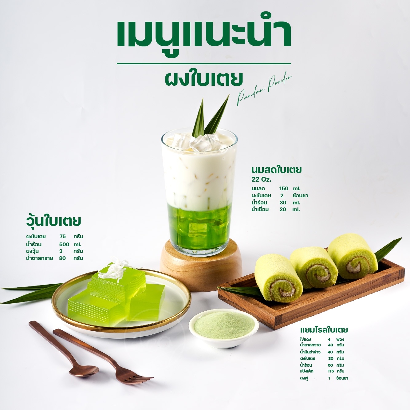 - Suitable for Thai desserts, sweets, ice cream, or beverages that require the benefits and flavor of natural pandan leaves.
