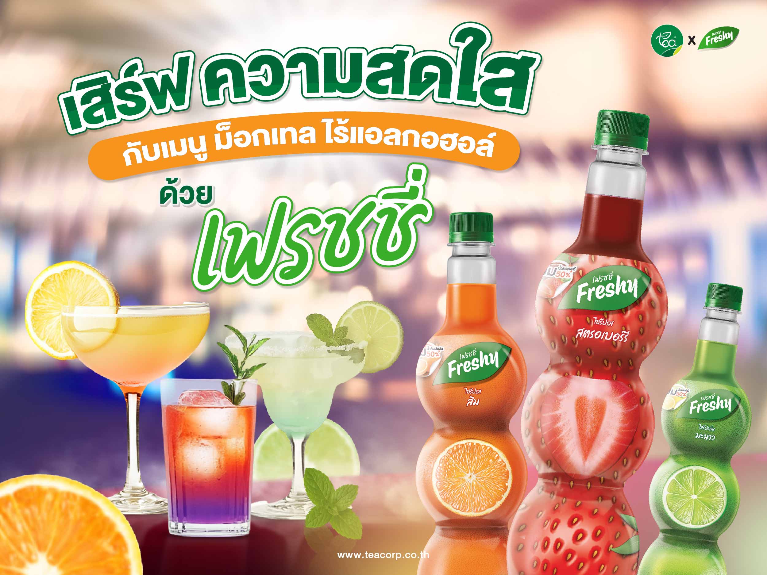 ไซรัป เฟรชชี่ (Freshy Syrup) เป็นวัตถุดิบสำคัญในการทำ มอคเทล เพราะมี รสชาติ หลากหลายจากผลไม้แท้ สีสวยสด และมีกลิ่นหอมที่ช่วยให้ เครื่องดื่ม ดูพรีเมียมขึ้น