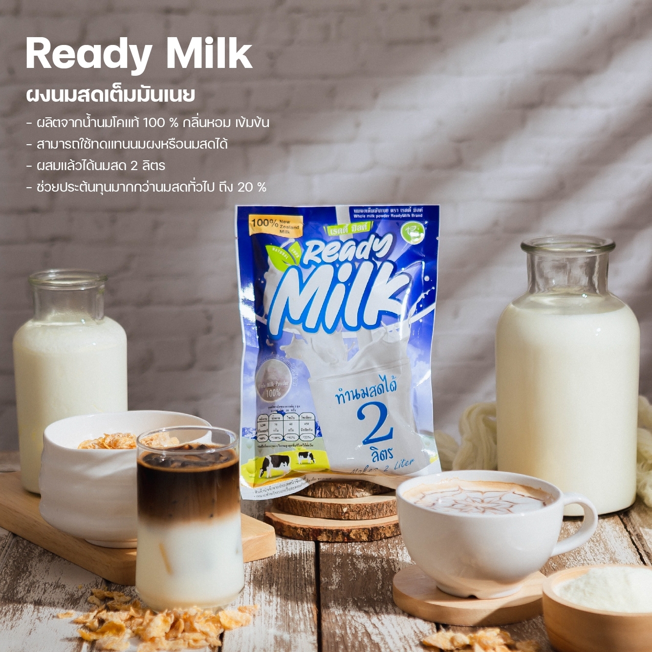 ผงนมสด Ready Milk ชนิดเต็มมันเนย เป็นนมผงสำเร็จรูปสำหรับชงผสมเครื่องดื่ม นำเข้าจากประเทศนิวซีแลนด์ กลิ่นหอม เข้มข้น ช่วยประหยัดต้นทุน